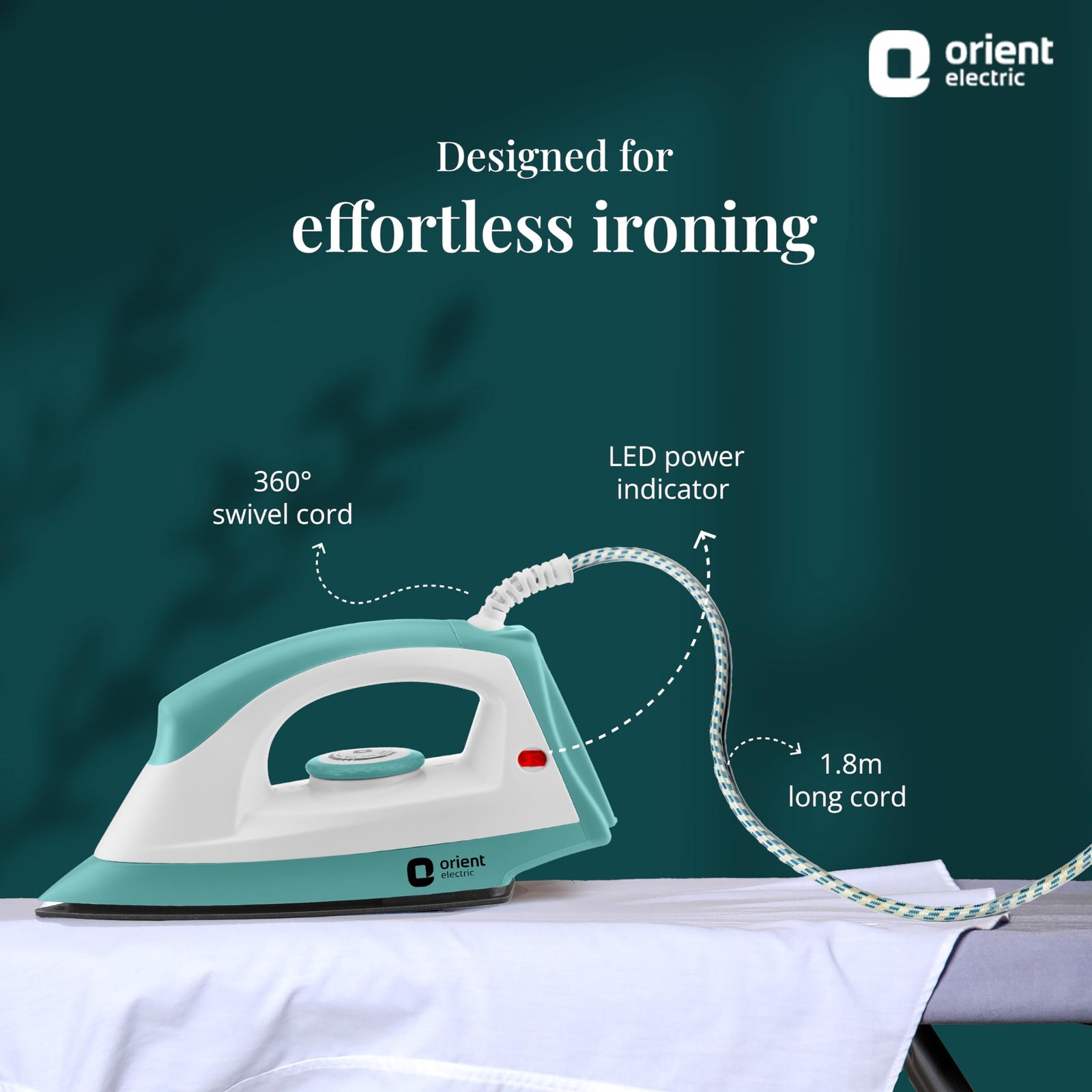 The fabri joy dry iron with plastic body comes with an array of features to give you the best ironing experience. Light in weight, easy to use and highly effective on creases, fabri joy dry iron guarantees smooth performance every time. If you are looking for lightweight, quality dry iron for your daily ironing needs, look no further than the fabri joy dry iron. The high quality non-stick American heritage sole plate makes sure that this iron glides easily and effortlessly on all types of fabrics. The C-type heating element further ensures uniform heat distribution. It consumes only 1000 watts of power and heats up in no time to deliver best ironing results while saving you time. The 360 degree swivel cord allows you to move the iron in any direction with utmost ease, thereby allowing for faster and effective ironing. The temperature control knob allows you to select the best temperature setting according to the type of fabric. It also comes with a Neon lamp indicator.