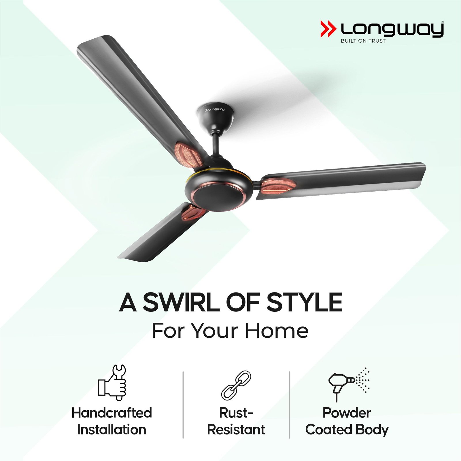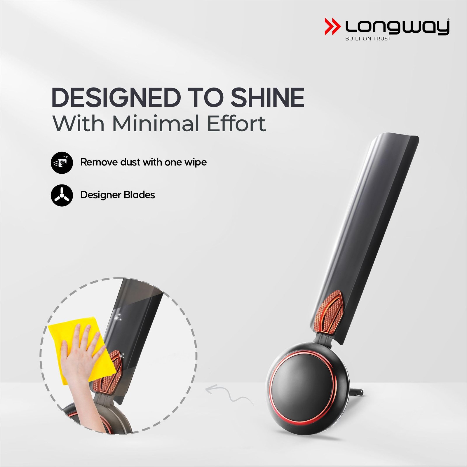 - Body Design/Features: Rust Proof Powder Coated Body and Wide Blade set. Also, comes with the glossy finish and dust proof technology. Helps to enhance the consumer experience by removing the dust with just one wipe.
