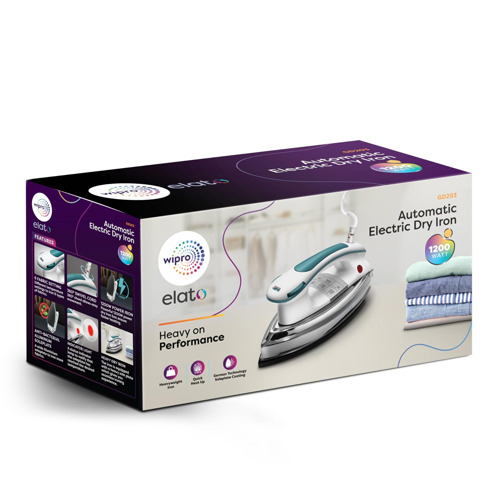 • Heavy performance dry iron – 1200 Watt to back up heavy weight performance with power