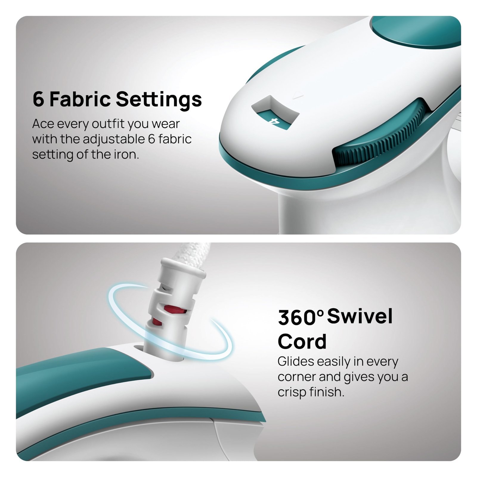 • Stylish & Ergonomic design with a heavy soleplate ensuring class to your wardrobe and style