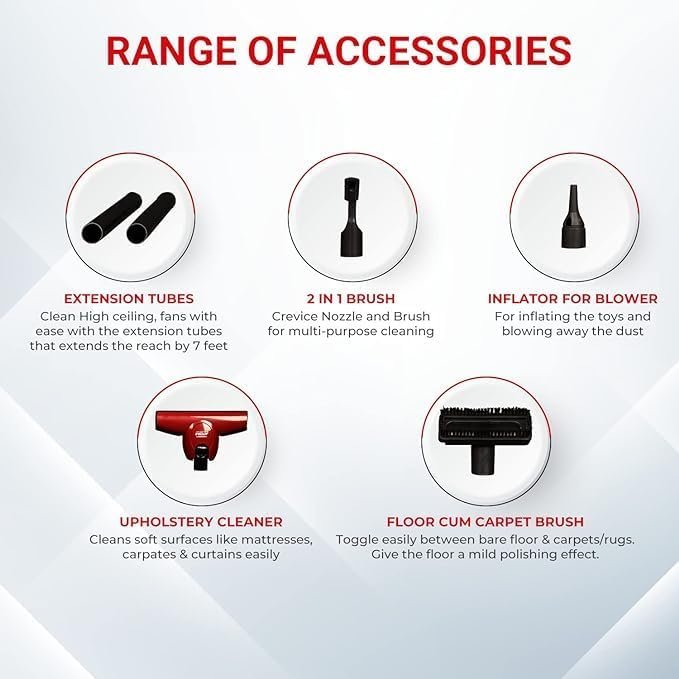 12,000 Pa Powerful Suction Power, 2-in-1, Handheld & Stick Functions, Blower Function, Can be Used as Inflator for Toys; for Home Use, with Washable Filter