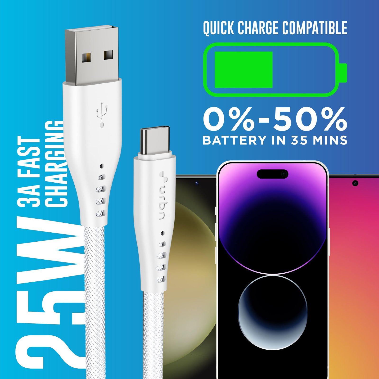 • FAST CHARGING: 25W quick charge capability charges compatible devices from 0% to 50% in just 35 minutes with 3A fast charging support