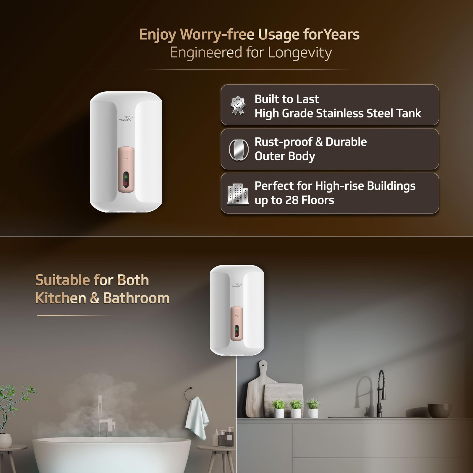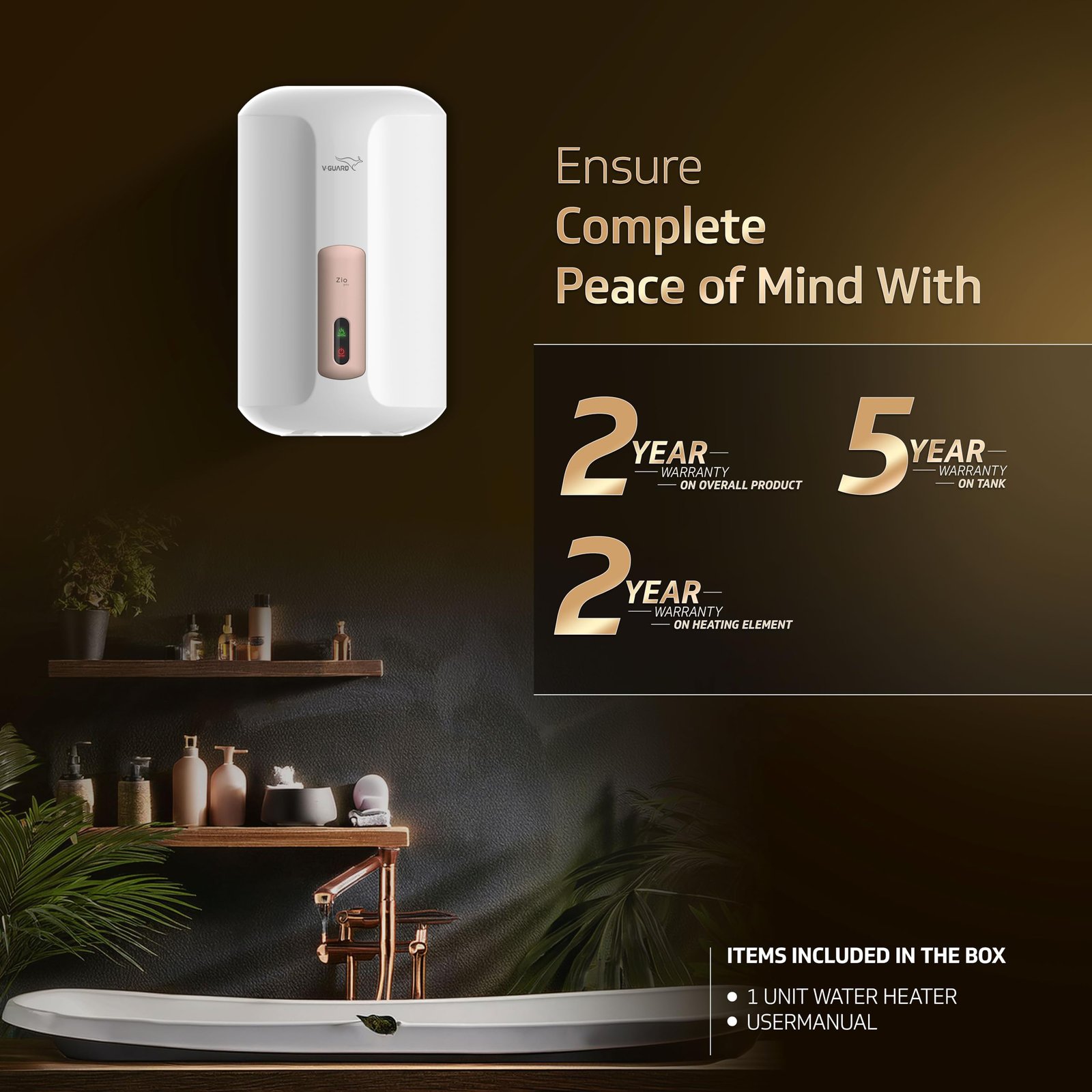 - WARRANTY: Zio Plus has a warranty of 2 Year on Product, 2 Year on Heating Element and 5 Year on Inner Tank