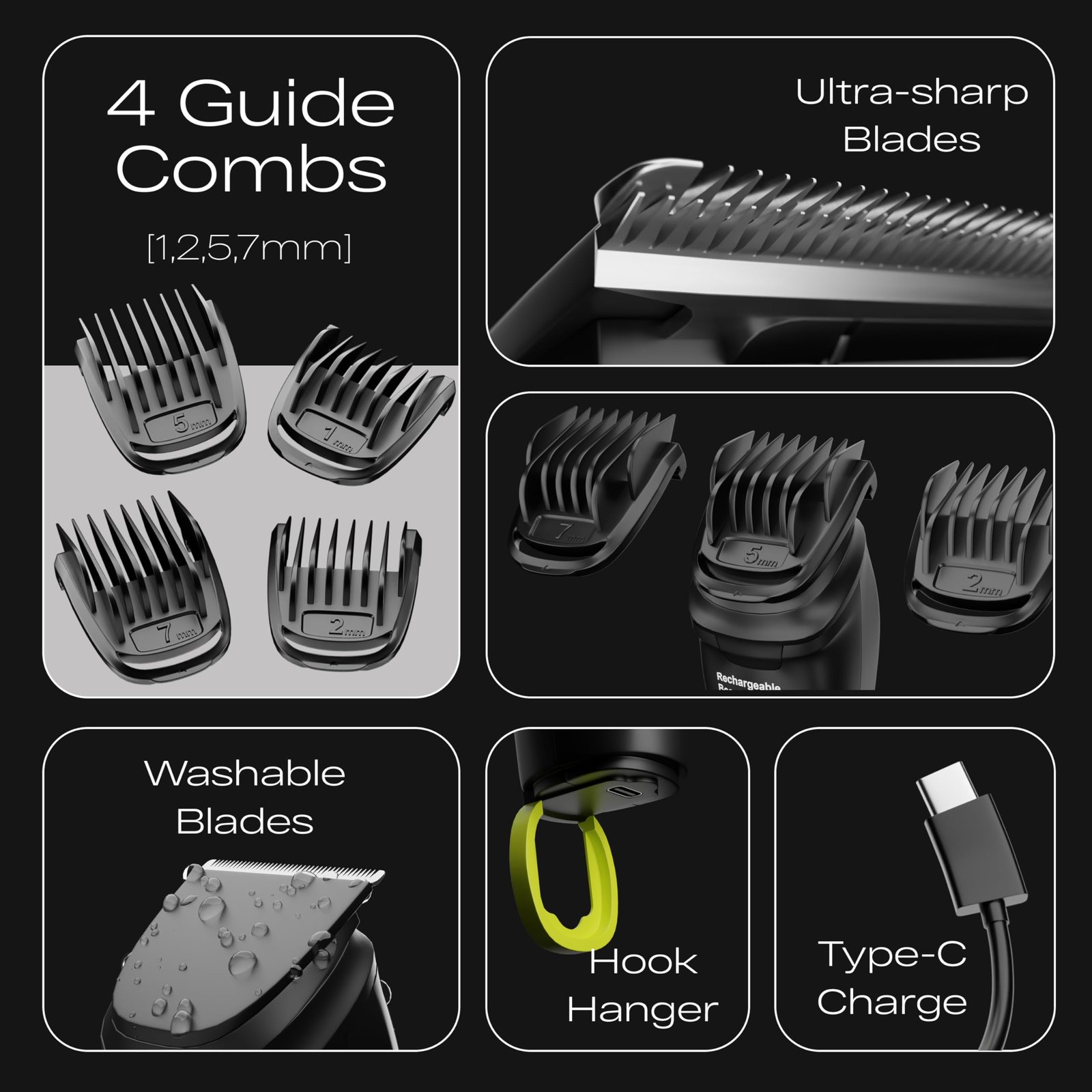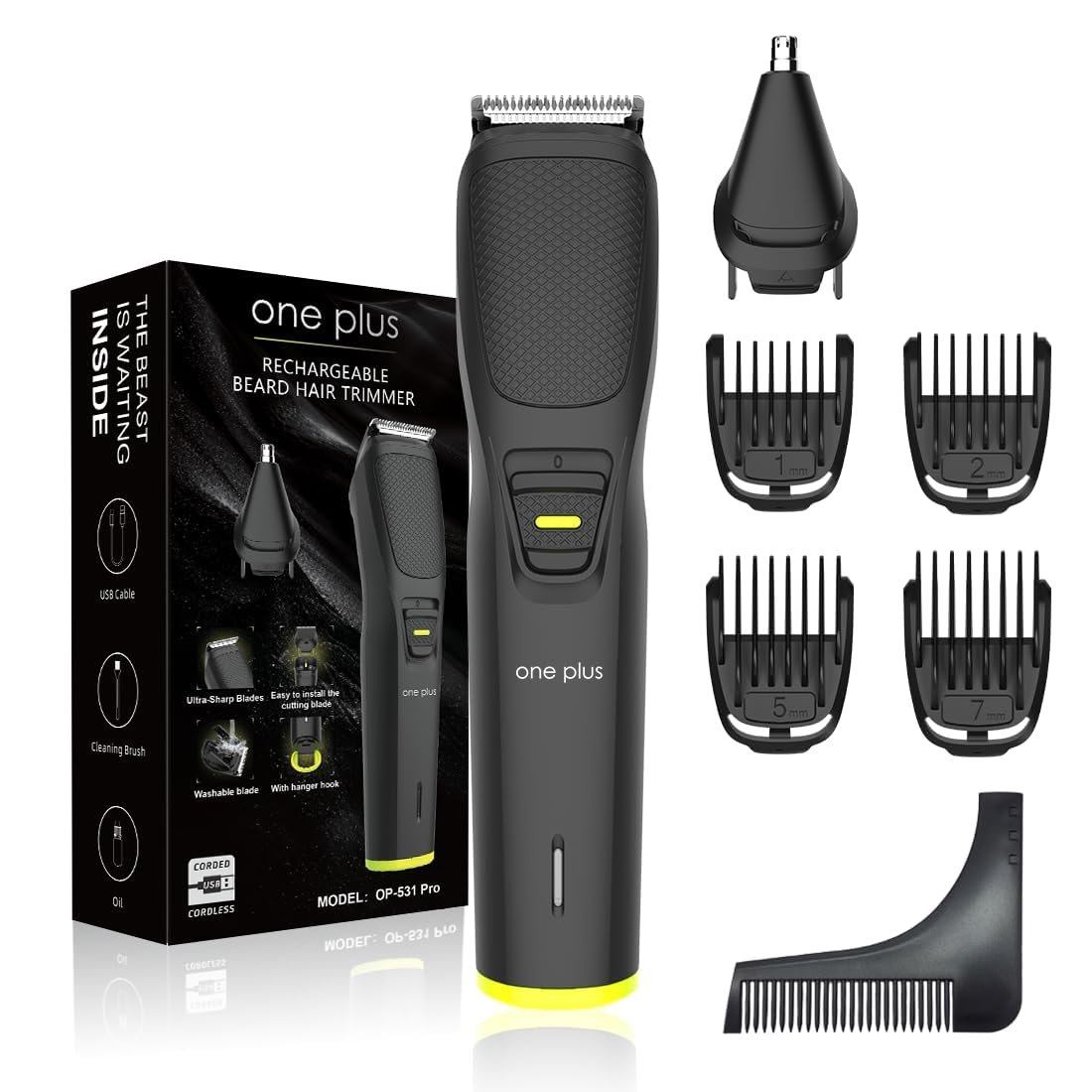 Introducing the Beard Trimmer – your ultimate grooming companion for a precise and stylish beard look. Engineered with cutting-edge technology and a sleek design, this beard trimmer is set to redefine your grooming experience. Key Features: 1. Precision Cutting Blades: The Beard Trimmer is equipped with ultra-sharp stainless steel blades that ensure a clean and precise trim every time. Achieve the perfect beard length with ease and confidence. 2. Adjustable Length Settings: Customize your beard style with multiple length settings. Whether you prefer a short stubble or a longer, well-groomed beard, the adjustable settings make it simple to achieve the look you desire. 3. Long Battery Life: Say goodbye to frequent charging interruptions. The Beard Trimmer boasts an extended battery life, ensuring that you can achieve your desired look without the hassle of constant recharging. 4. Fast Charging Technology: When time is of the essence, the fast charging feature comes to the rescue. Charge your trimmer quickly for a last-minute touch-up or a spontaneous grooming session. 5. Ergonomic Design: The sleek and ergonomic design of the Beard Trimmer fits comfortably in your hand, providing maximum control and ease of use. Trim with confidence, knowing you have a tool designed for your comfort. 6. LED Display: Keep track of your trimming progress with the built-in LED display. Monitor battery life and length settings at a glance, ensuring a seamless grooming experience. 7. Easy Maintenance: The detachable blades make cleaning and maintenance a breeze. Simply rinse the blades under running water for quick and efficient cleanup. 8. Travel-Friendly: Designed with the on-the-go individual in mind, the Beard Trimmer is compact and travel-friendly. Maintain your well-groomed look wherever life takes you.