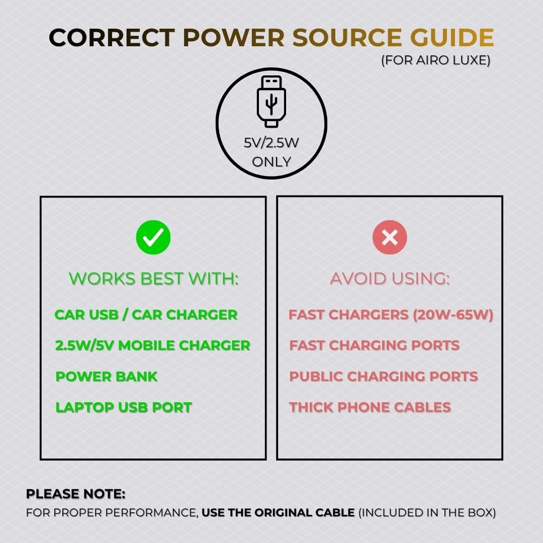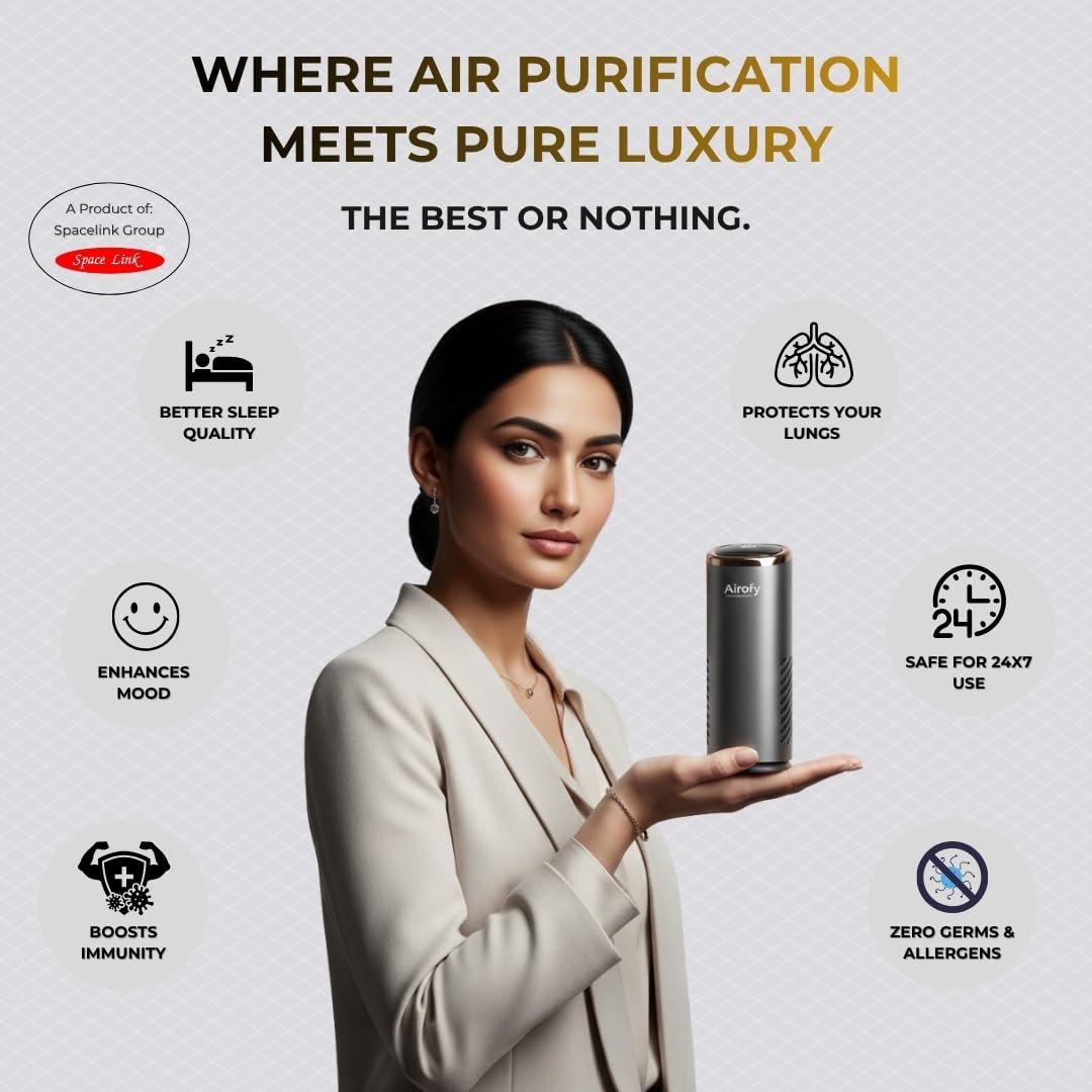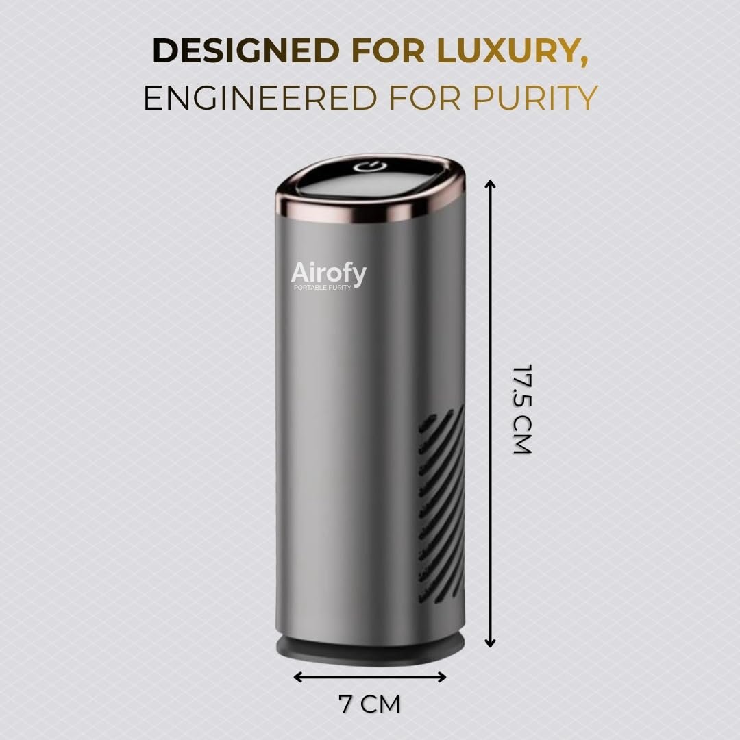 Breathe Luxury, Wherever You Are. Airo Luxe – The Premium Portable Air Purifier is designed for those who demand cleaner air and a touch of elegance. With its advanced 3-layer filtration system, Airo Luxe effectively removes PM2.5 particles, smoke, dust, pollen, pet dander, and odours, ensuring pure, healthy air in every breath. Engineered for Indian pollution levels, it performs effortlessly across cars, small bedrooms, and workstations, making it your perfect on-the-go purifier. The high-speed, ultra-quiet motor purifies air rapidly without disturbing your peace, while the sleek metallic finish adds a touch of sophistication to your surroundings. Compact, powerful, and refined – Airo Luxe combines premium design with cutting-edge performance, giving you mountain-fresh air anytime, anywhere. For those who settle for nothing less than the best.