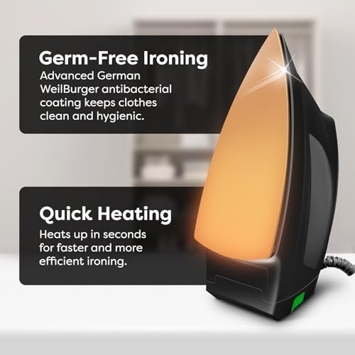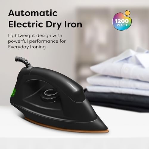 Automatic Electric Dry Iron 1200 Watt With Large LED Indicator | Large Soleplate|Anti Bacterial German Weilburger Double Coated Soleplate | Quick Heat Up – 1200 Watts, Black