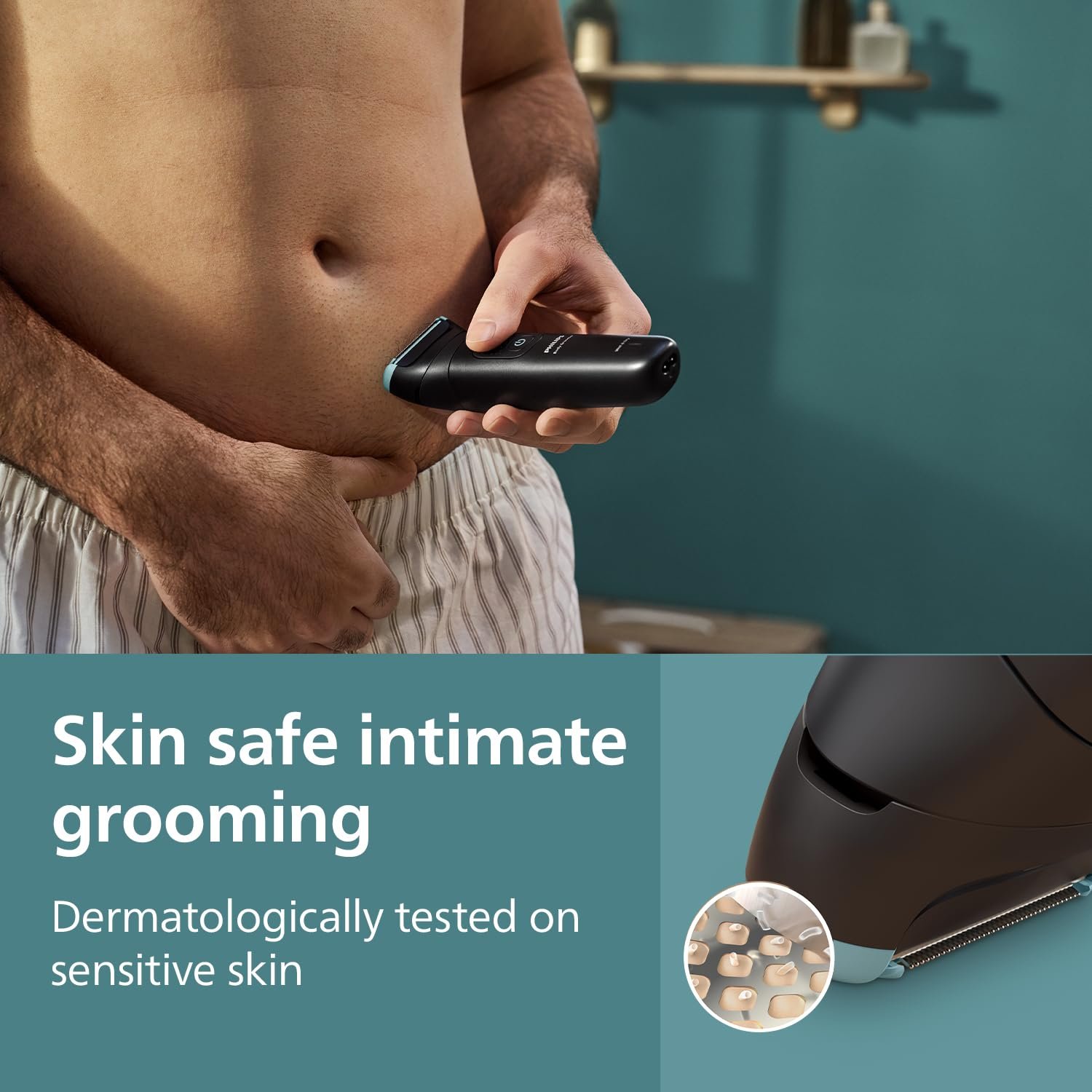 Designed to power through hair without compromise on skin comfort, even in hard-to-reach areas like the back. Use the skin friendly shaver with contour following 2D technology or trim with the 2, 3 or 5mm length combs, trimmer men for private parts