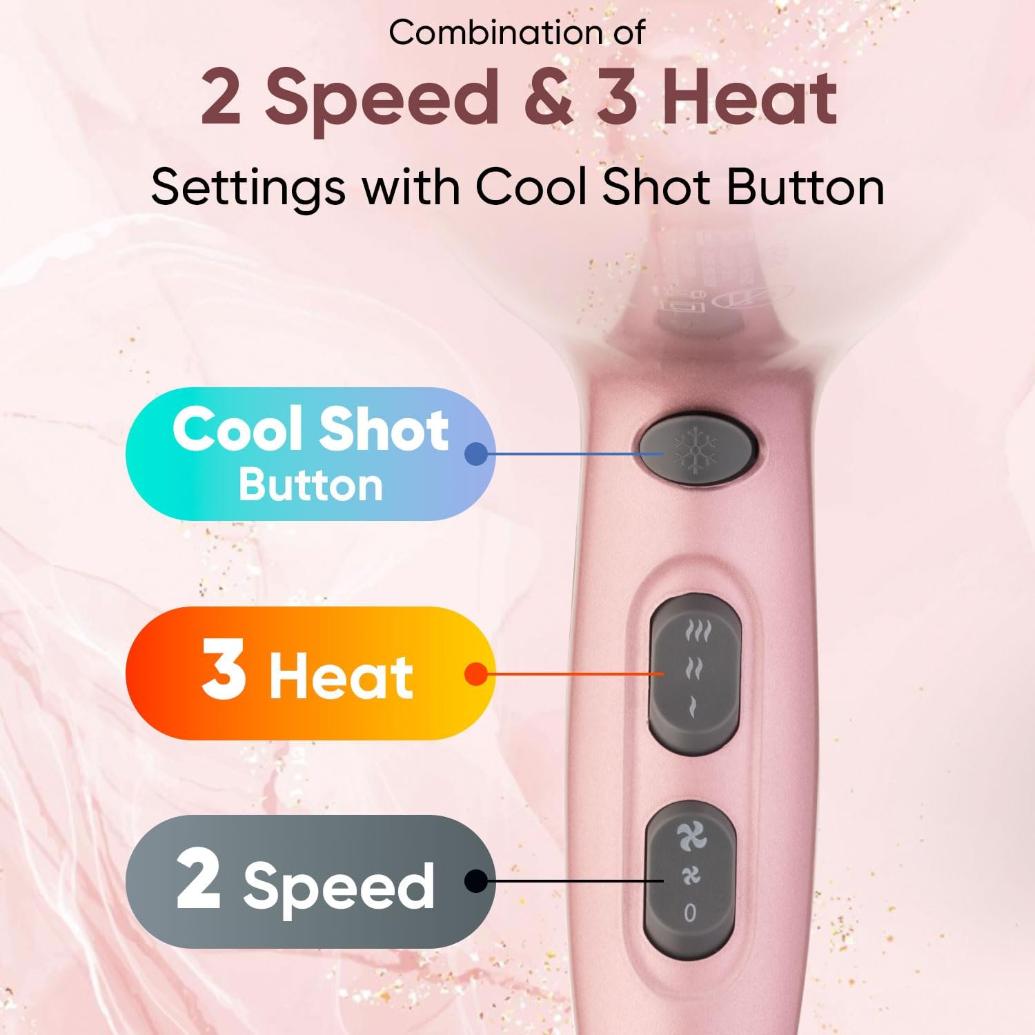 - 2. 2 Speed & 3 Heat Settings for Personalized Styling- Offers complete control with 2 speed options and 3 heat levels, allowing you to style all hair types—from fine to thick—effortlessly and safely.