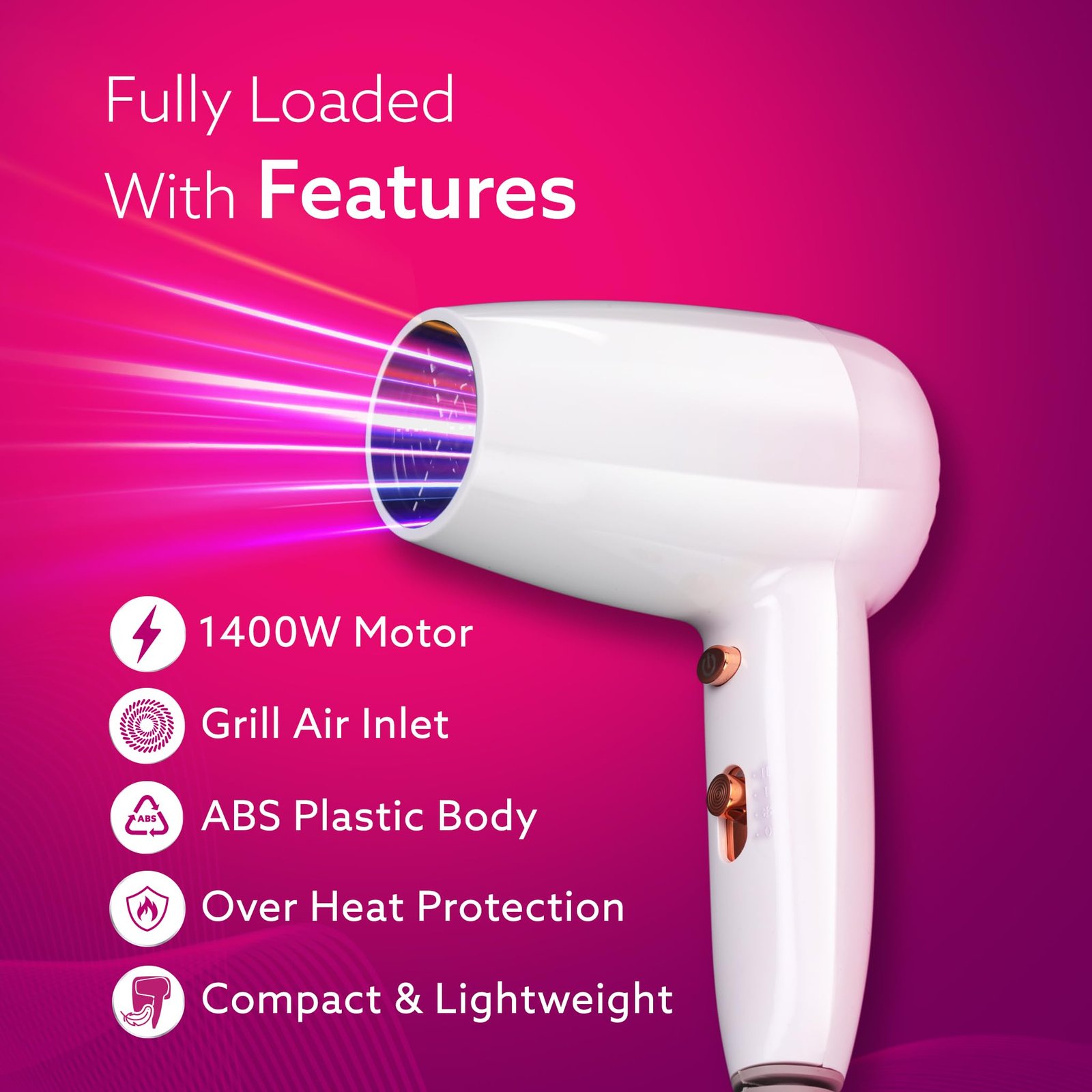 HD1417 Wall Mounted Hair Dryer comes with1400W powerful motor. The Electric Wall Mount Hair Dryer comes with 2 speed and heat settings along with cool shot function.