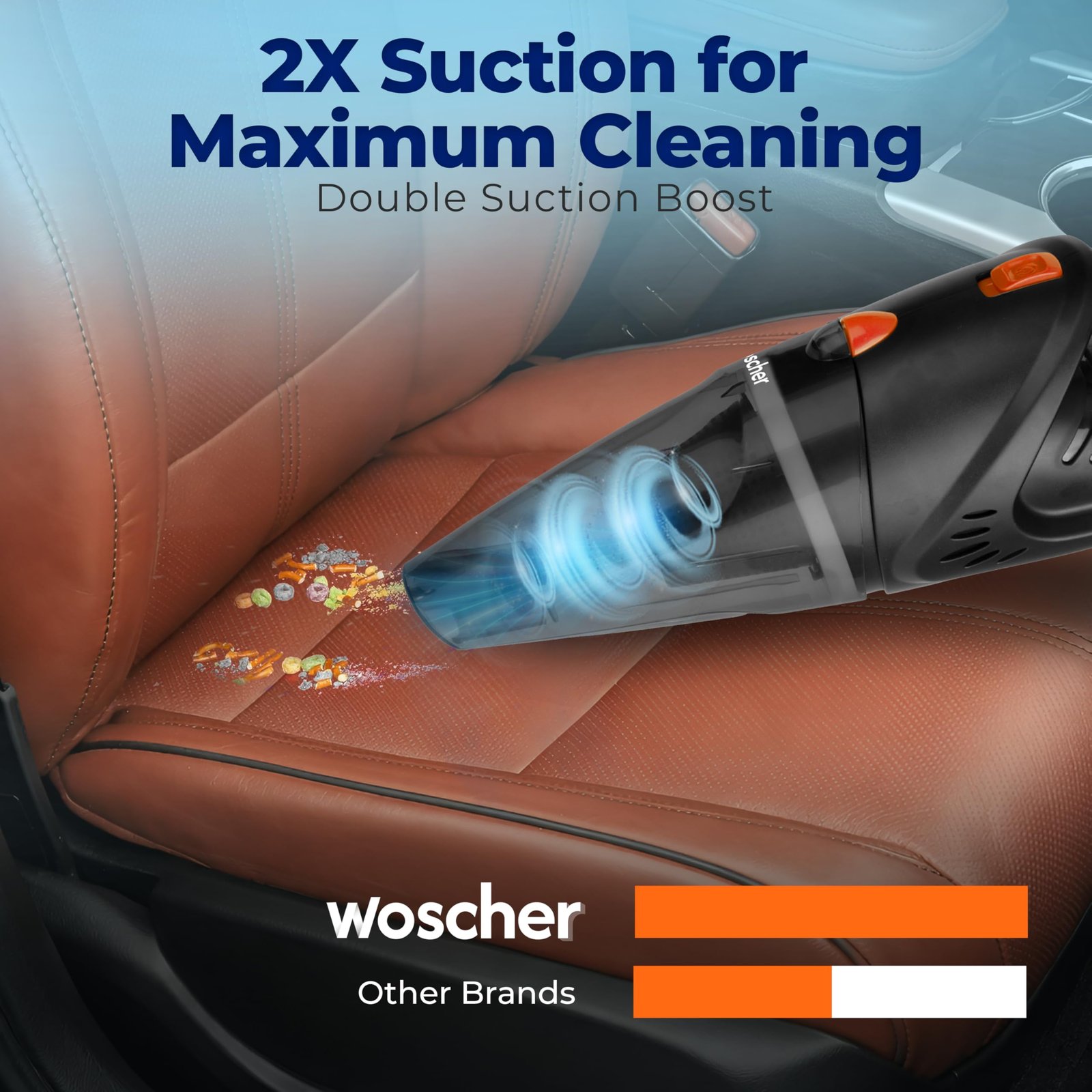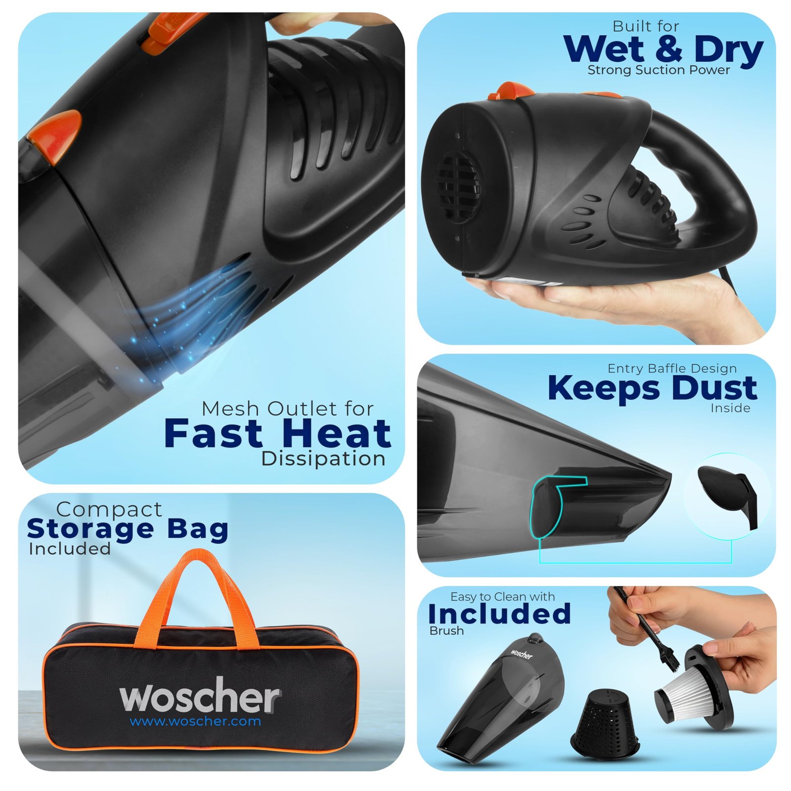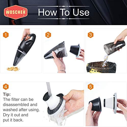 POWERFUL & EFFECTIVE CLEANING: Equipped with a 140-watt motor and an independently sealed metal fan, this portable car vacuum can clean your entire vehicle from all the accumulated dust, pet hair, debris, etc. It delivers strong 5000PA suction power to clean the difficulty to reach areas of your vehicle effectivel