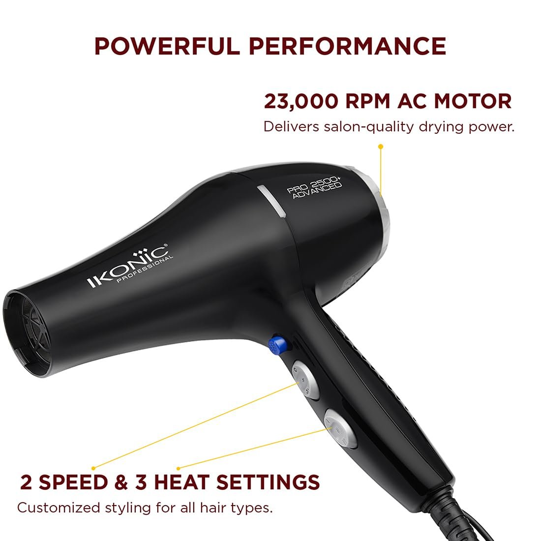 PROFESSIONAL 2500+ ADVANCED HAIR DRYER with dual watts compatibility 2400W-2800W ideal for global setting and Ionic technology for frizz control