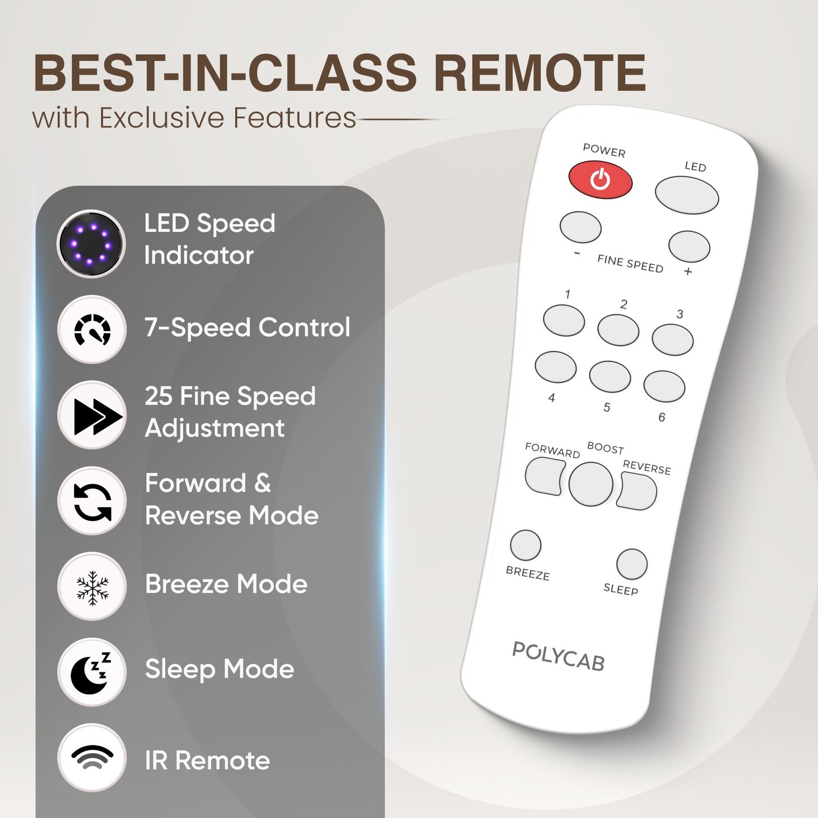 - ✅【LED Speed Indicator】The LED indicates the Speed and confirms to the user that their button press has been registered by the remote control. There is an option to turn off the Indicator LEDs.